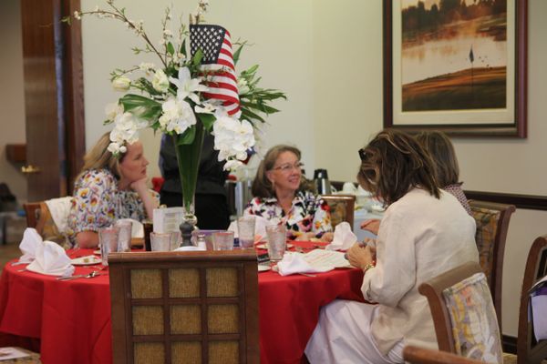 The room at Fleming's 'Restaurant was packed with women gathered for the OCW2W Lunch Club event honoring Nadine Haddad, co-founder of Home and Body Company. Nadine inspired the group with her personal story of strength, struggling and surviving while building her company and raising a family.